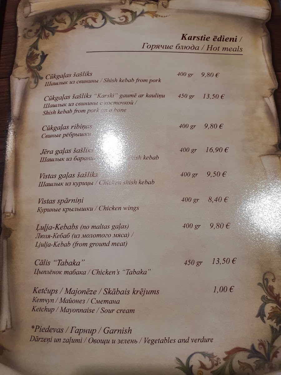 The menu at BISTRO 'MEGHRI' Armēņu kafejnīca presents a straightforward and comforting selection that feels at home in its relaxed, neighborhood setting. It offers a blend of traditional Armenian-inspired dishes alongside familiar Baltic and regional flavors, creating a casual dining experience well suited to everyday meals.